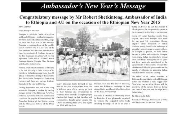 Ambassador’s Ethiopian New Year message (Ethiopian Herald, 11 Sept 2022)