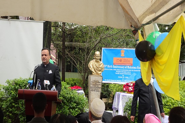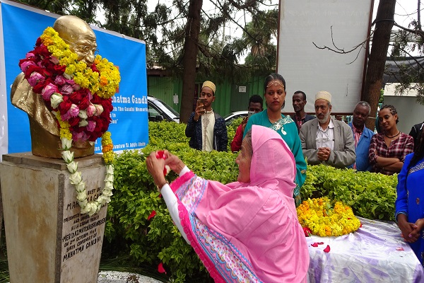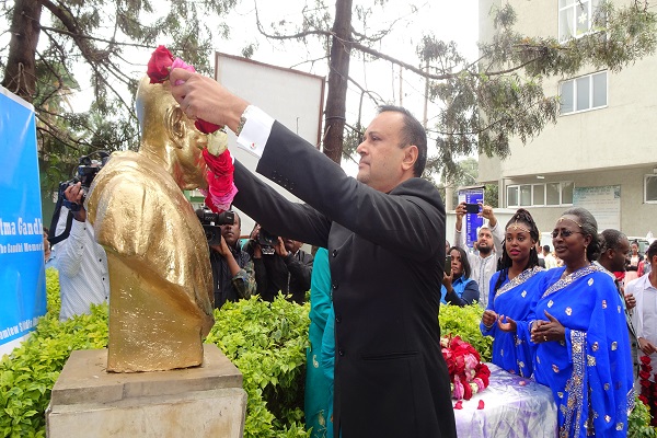 On the occasion of Gandhi Jayanti, the birthday of Mahatma Gandhi, the Embassy of India organised an event to celebrate the occasion. The event was held at the Gandhi Memorial Hospital in Addis Ababa and witnessed a large turnout of people. Speaking on the occasion, Ambassador of India Mr Anurag Srivastava highlighted the significance of the occasion, this being the 150th birth Anniversary of Mahatma Gandhi. He spoke of the timelessness, universality and continued relevance of Mahatma Gandhi message in today world. Tributes were paid to the great soul by Dr Samuel Zemenfeskidus, Health Bureau Vice Head of the Addis Ababa City Administration and by the senior management of the Gandhi Memorial Hospital. Members of the Indian community also offered their floral tributes to Gandhiji on this occasion.