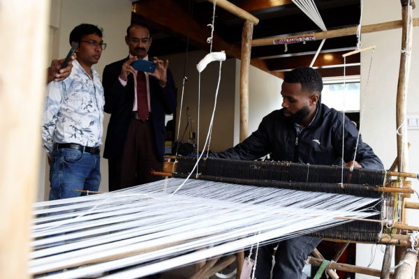 On 15 August 2025, the Embassy of India in Addis Ababa hosted a special programme under the Janjatiya Gaurav Diwas 2025″ celebrations, marking the 150th birth anniversary of Bhagwan Birsa Munda. As part of the event, the Embassy curated a vibrant cultural segment showcasing live demonstrations of tribal craftsmanship. Ethiopian tribal artisans presented a wide range of traditional skills, including clay pottery, painting, leather crafting, basket weaving, handloom weaving, and the operation of the charkha, among others.