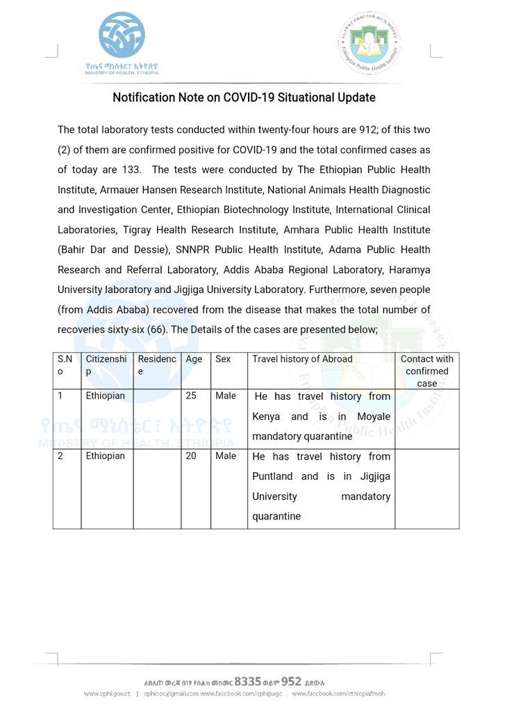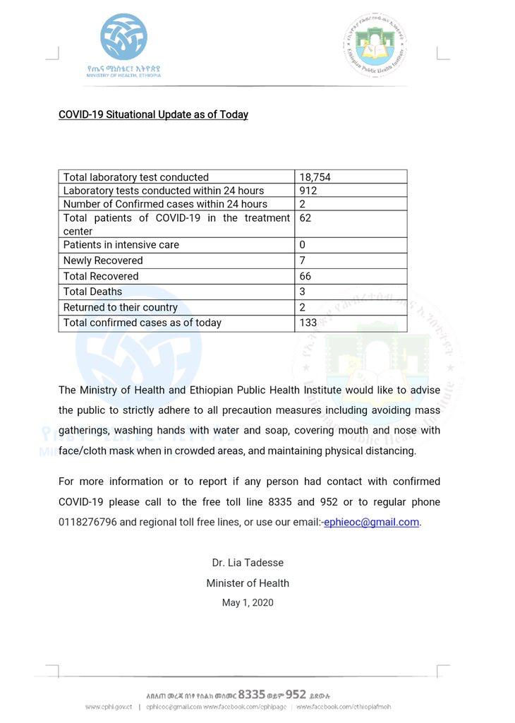 Click Here – Status of Covid-19 Cases in Ethiopia on 1.5.2020