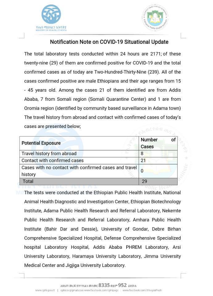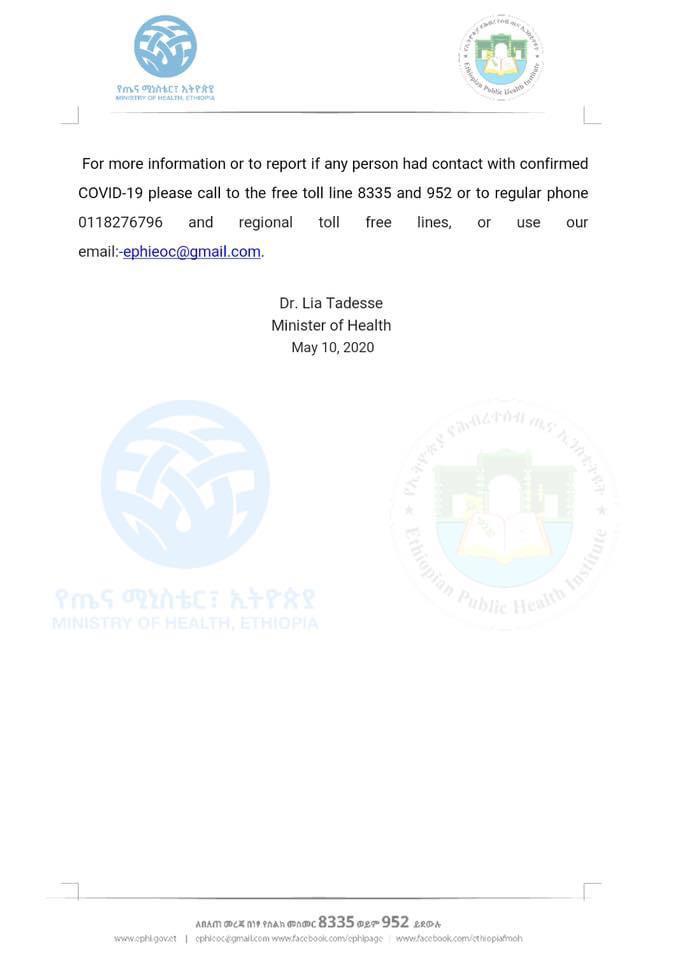 Click Here – Status of Covid-19 Cases in Ethiopia on 10.5.2020