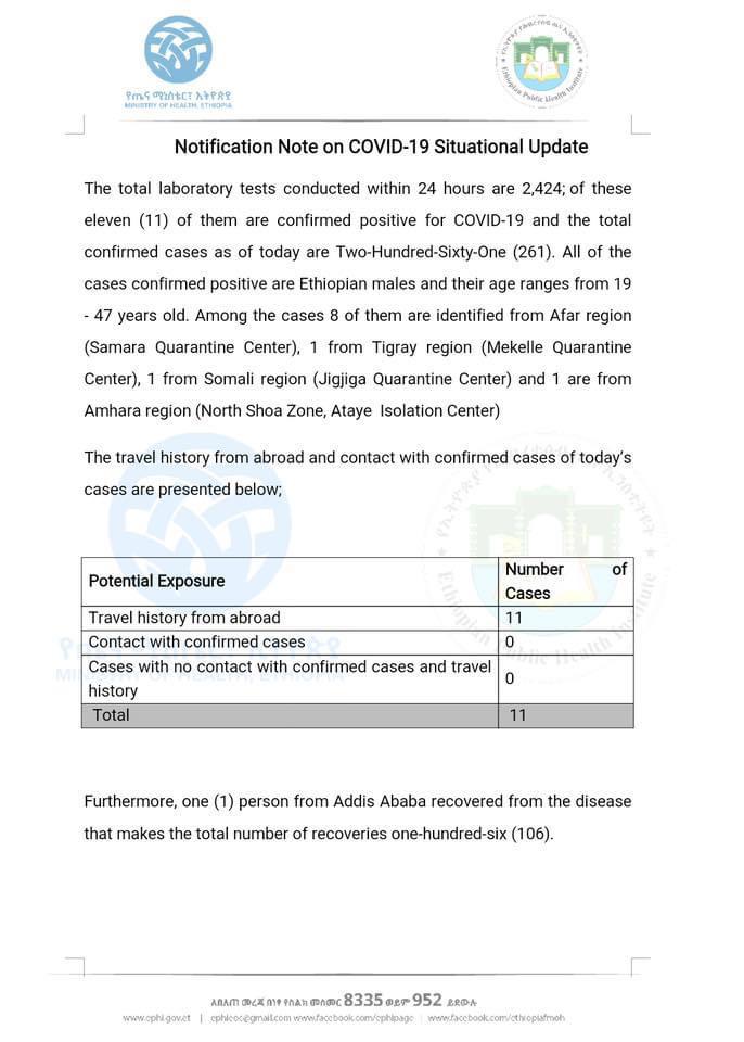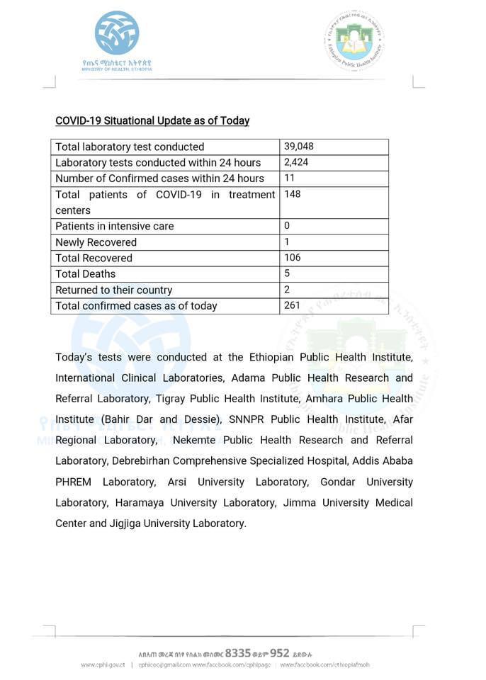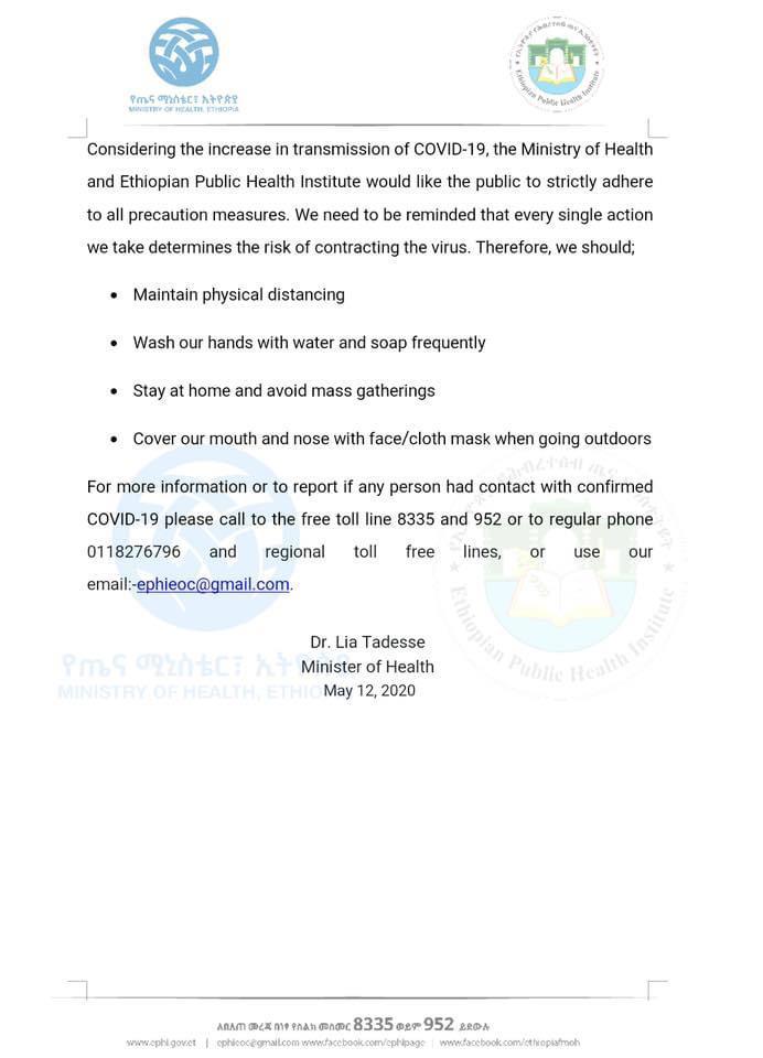 Status of Covid-19 Cases in Ethiopia on 12.5.2020