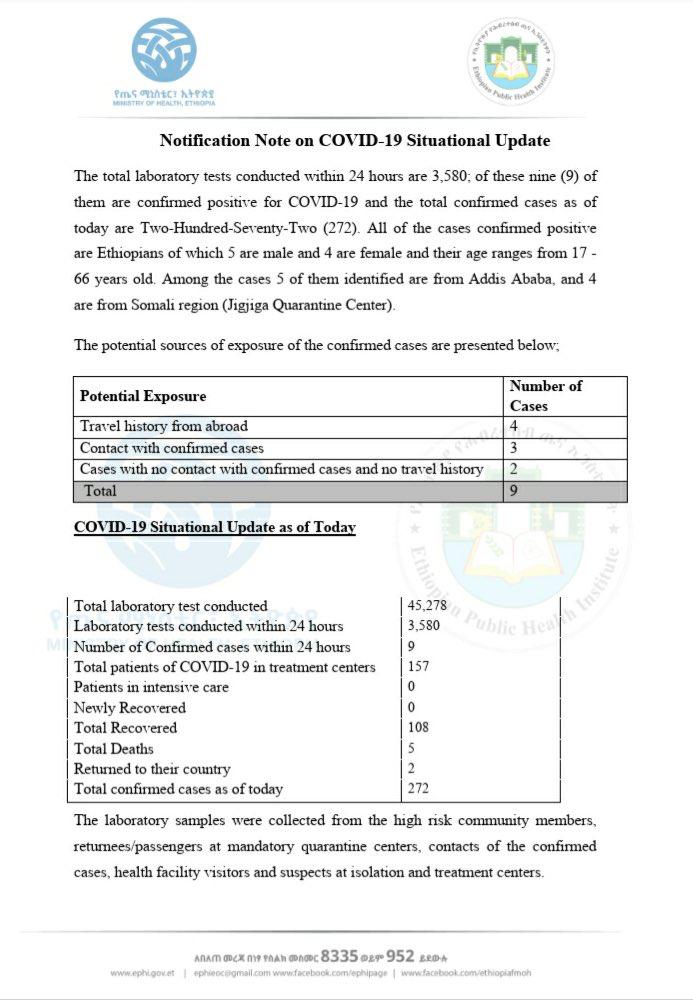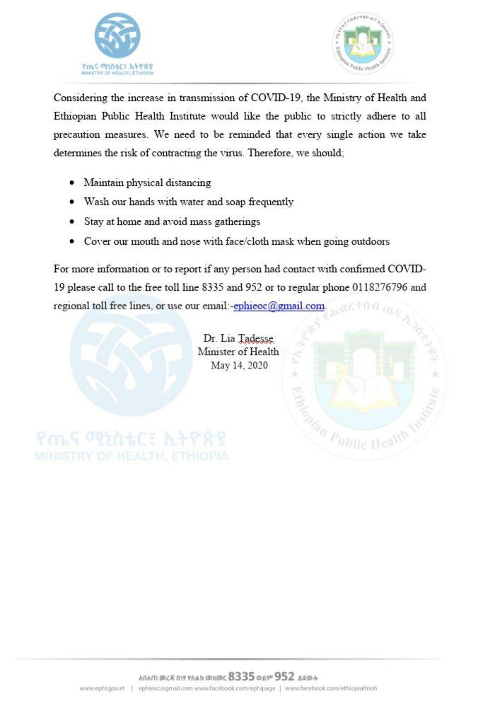 Click Here – Status of Covid-19 Cases in Ethiopia on 14.5.2020