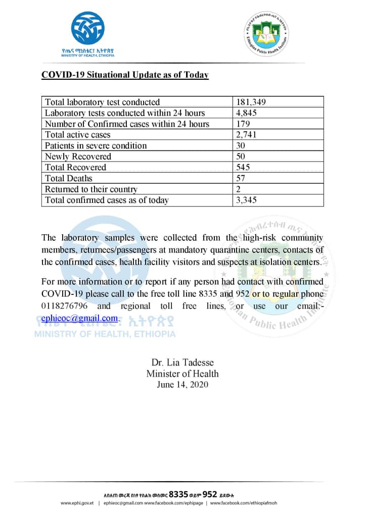 Click Here – Status of Covid-19 Cases in Ethiopia on 14.6.2020