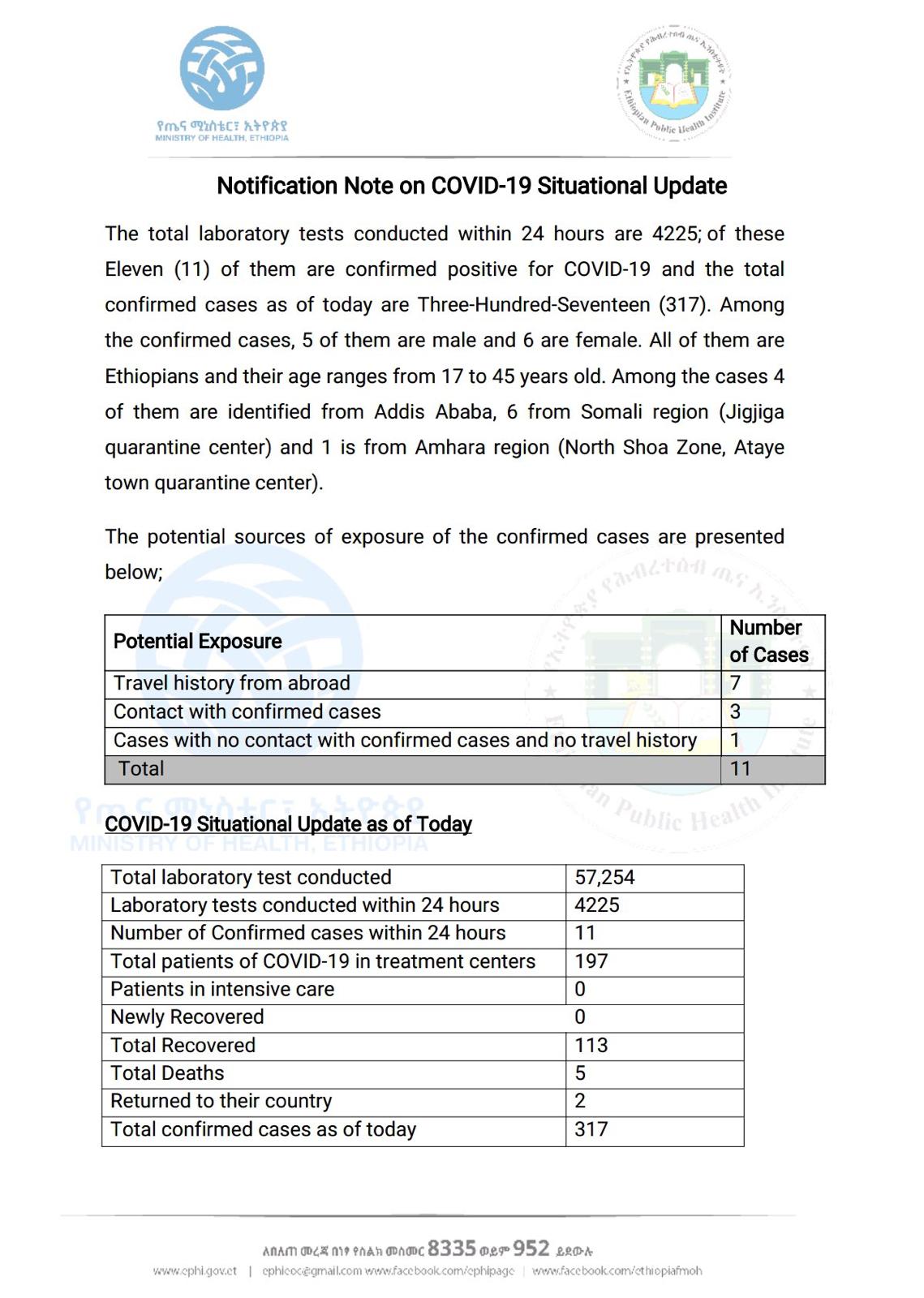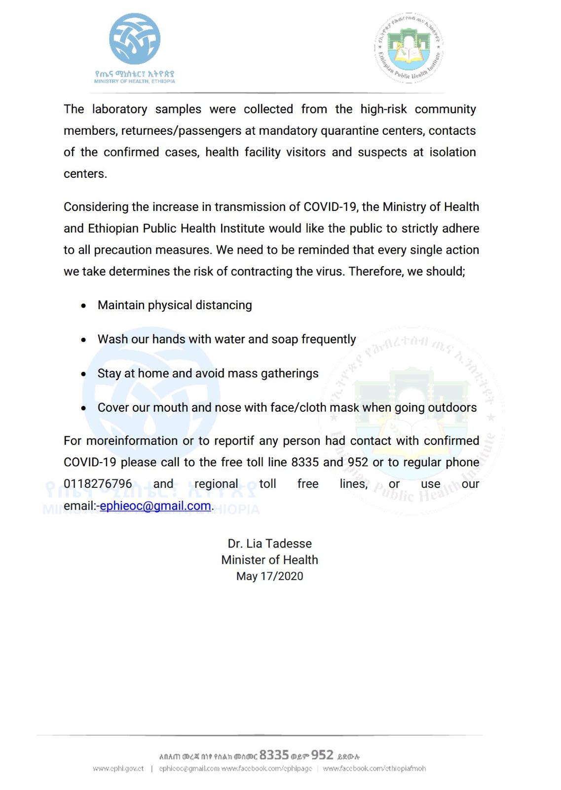 Status of Covid-19 Cases in Ethiopia on 17.5.2020
