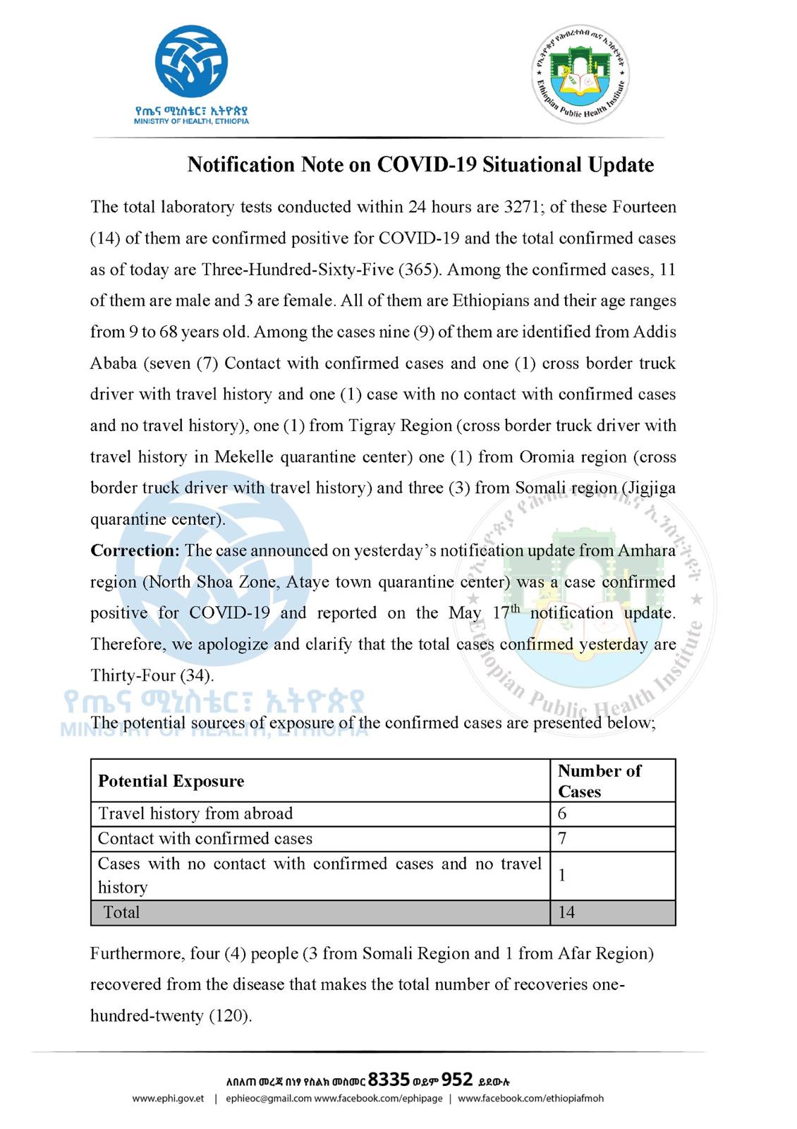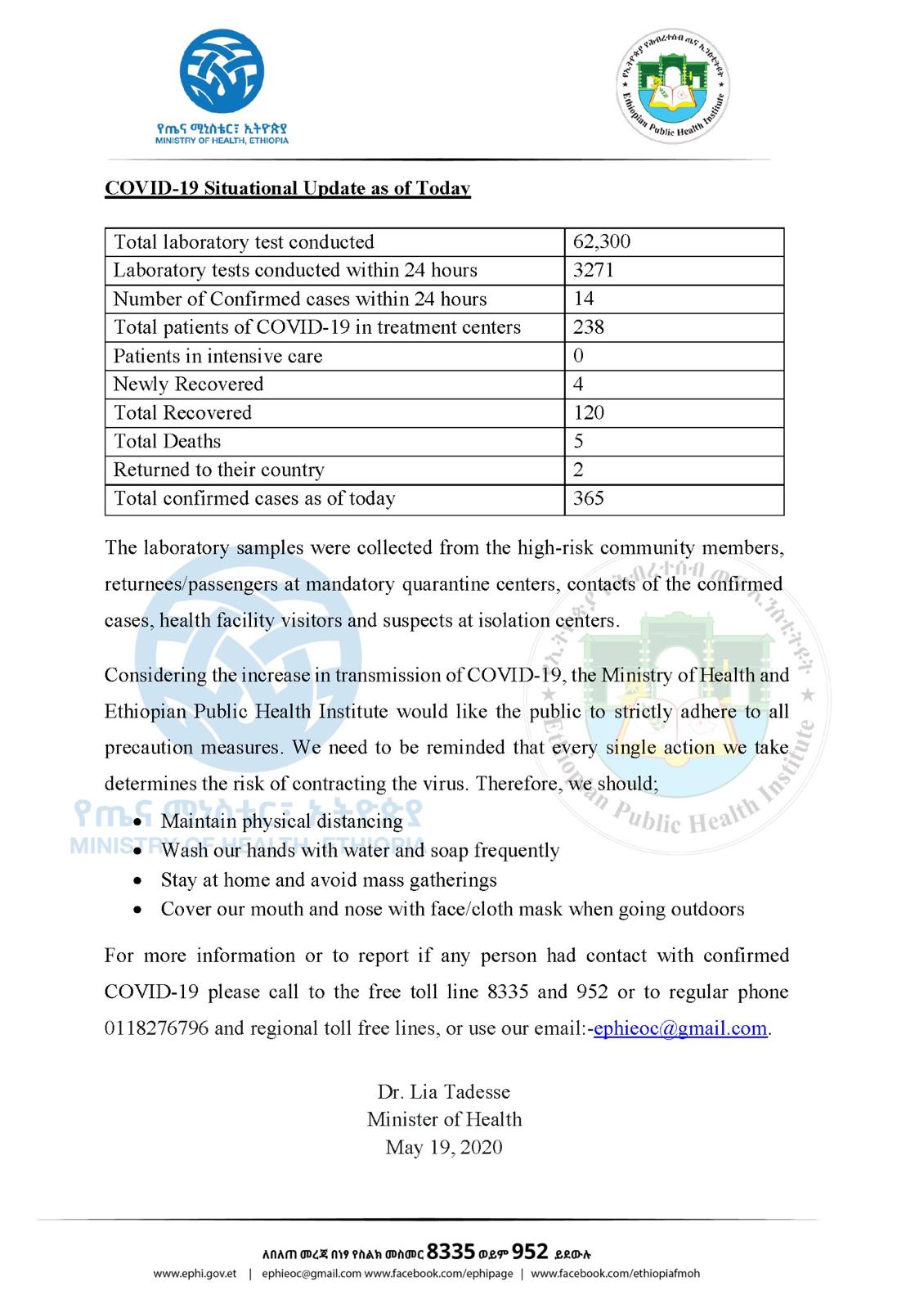 Click Here – Status of Covid-19 Cases in Ethiopia on 19.5.2020