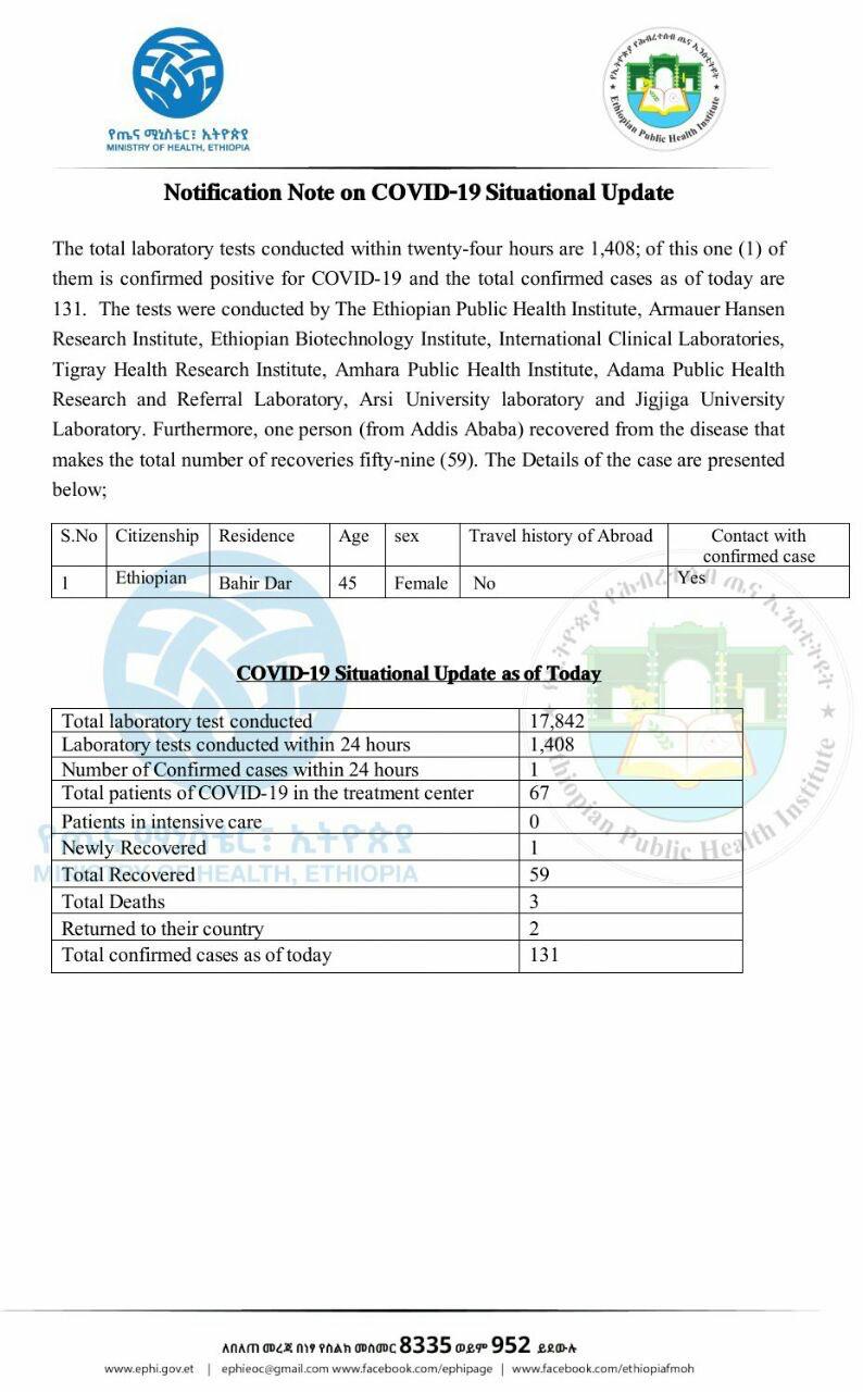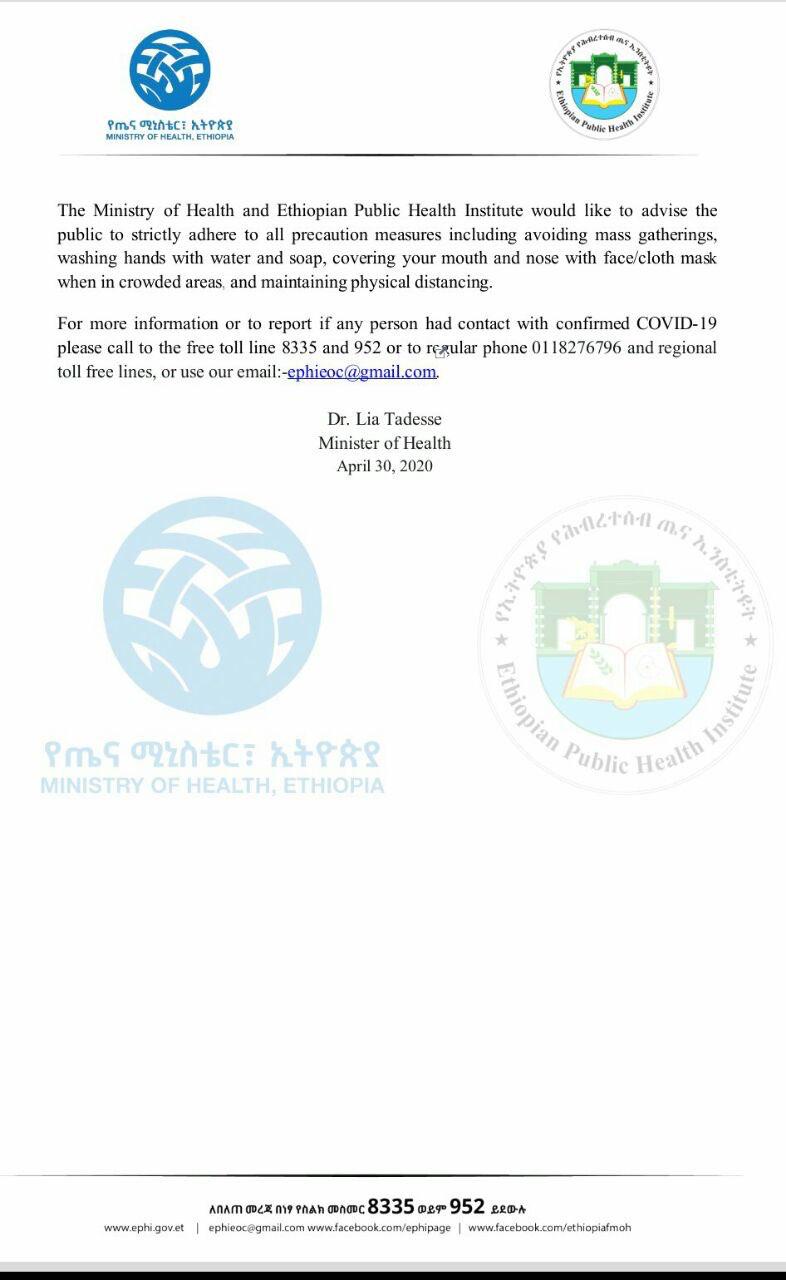 Click Here – Status of Covid-19 Cases in Ethiopia on 30.4.2020