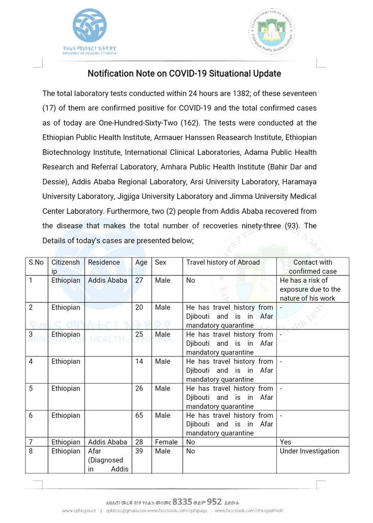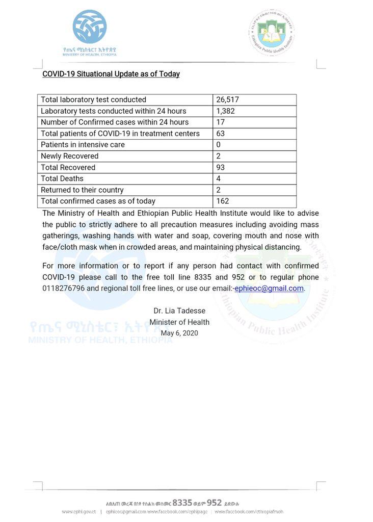 Click Here – Status of Covid-19 Cases in Ethiopia on 6.5.2020
