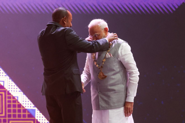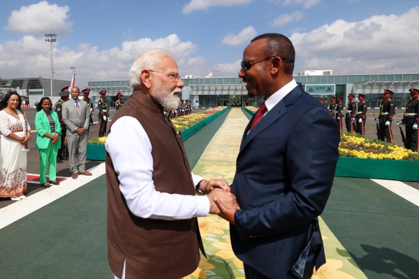 PM Narendra Modi was warmly received by Ethiopian PM Abiy Ahmed Ali and accorded a ceremonial welcome at the National Palace ahead of the bilateral talks. PM Modi laid a wreath at the Adwa Victory Monument in Addis Ababa and awarded Ethiopia’s highest honor ‘Great Honor Nissan of Ethiopia’ for strengthening India-Ethiopia partnership during his historic visit to Ethiopia. PM Modi has planted trees in the compound of the House of Representatives of Ethiopia.